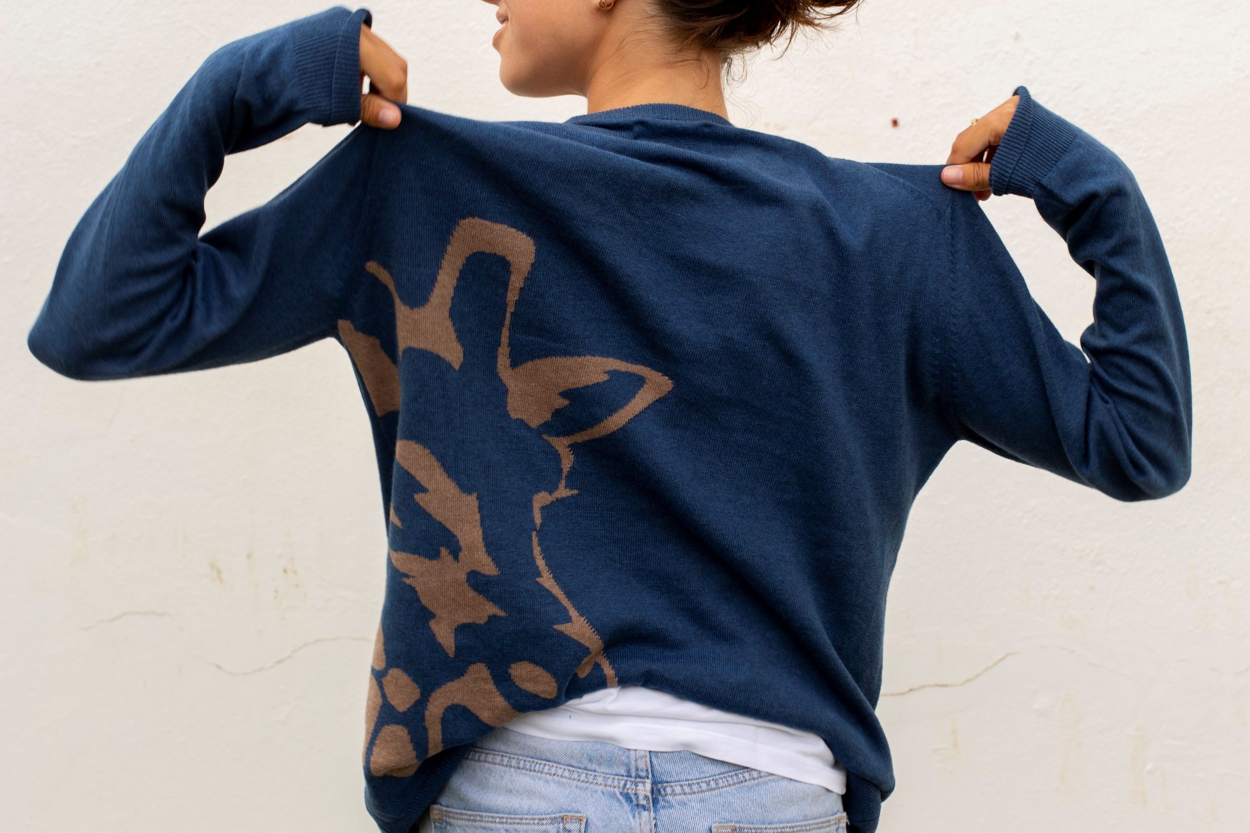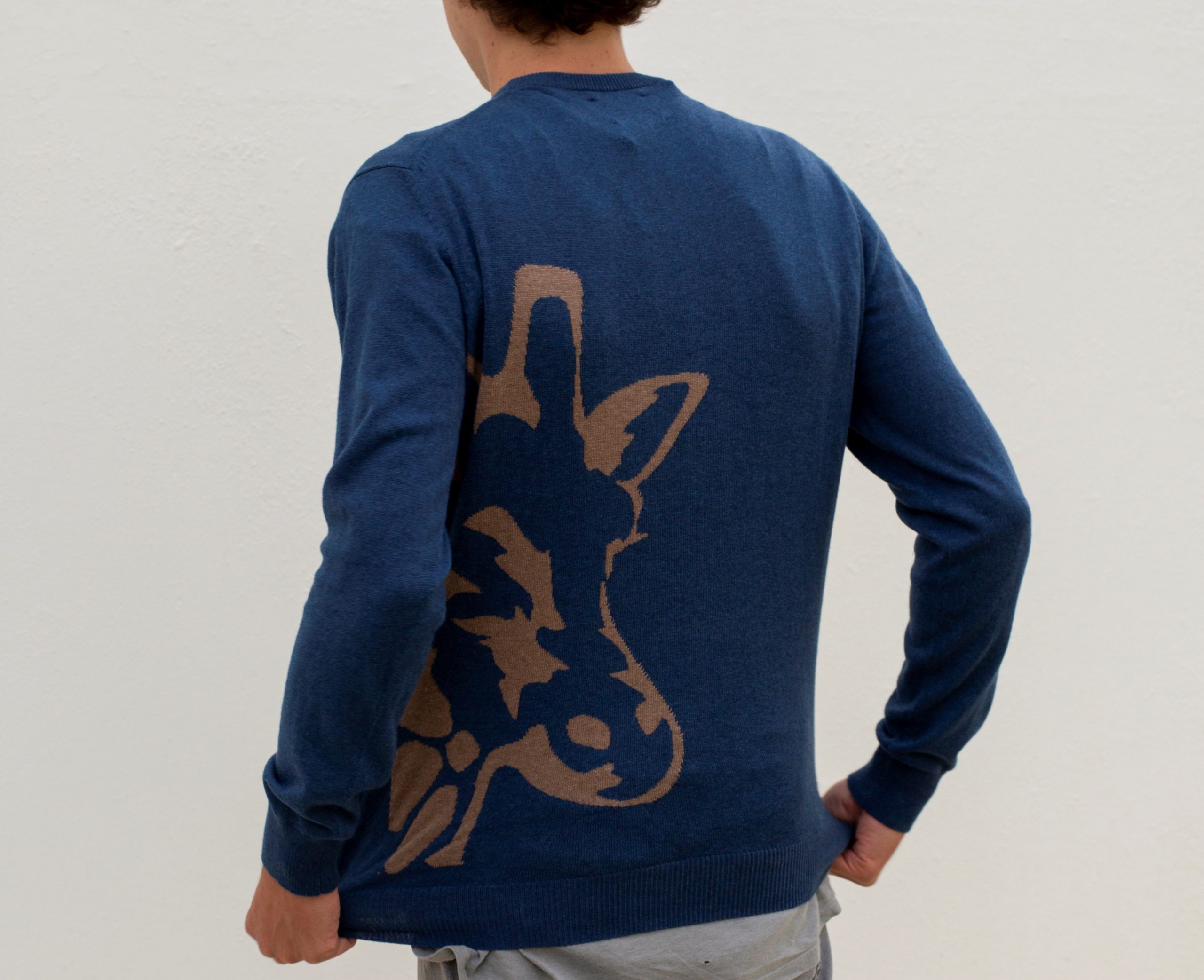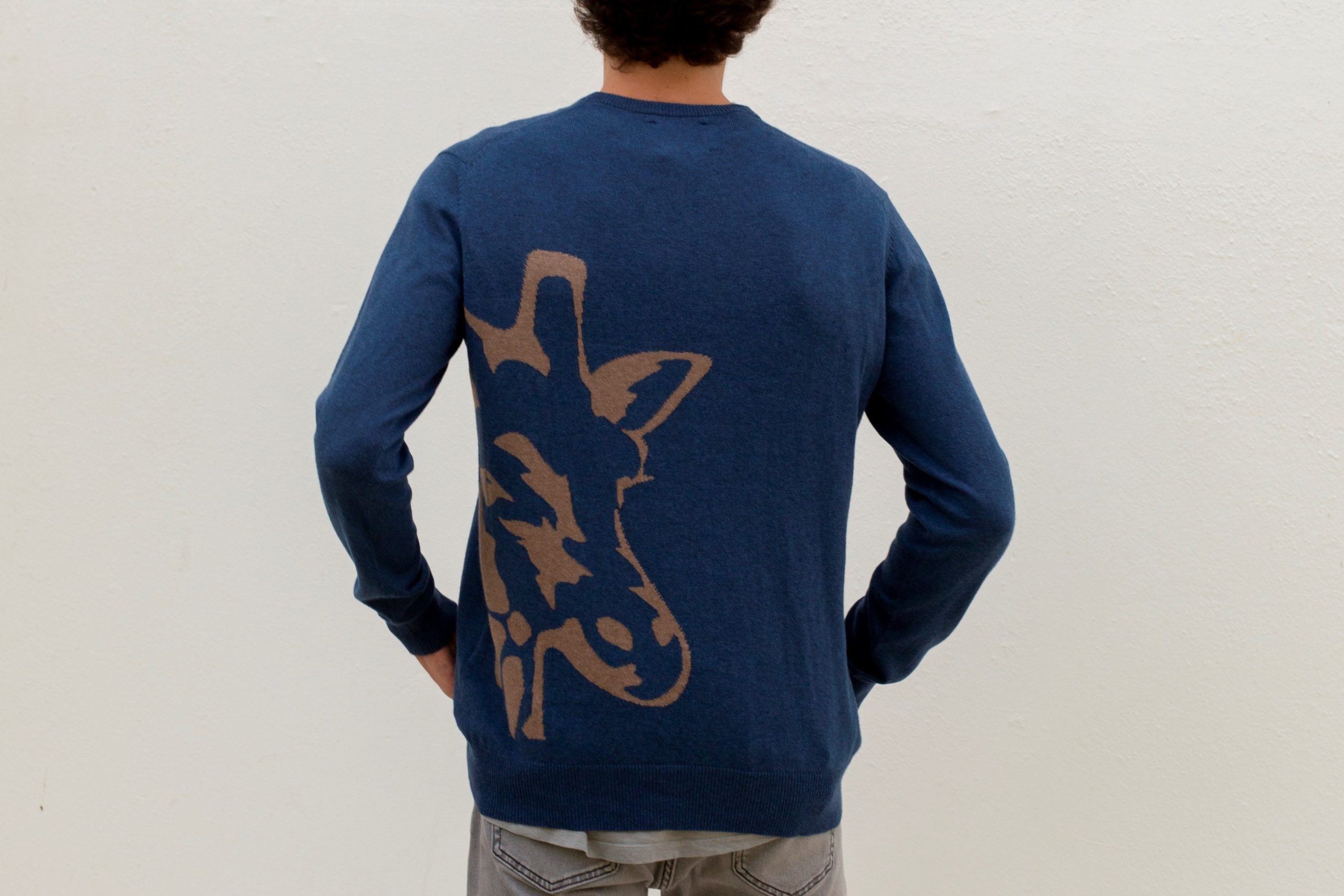 Edición limitada. Jersey con intarsia de jirafa en la espalda, cuello redondo y manga larga con acabado canalé en bajo y puños. Tacto suave y grosor fino válido para cualquier época del año.